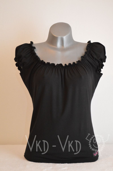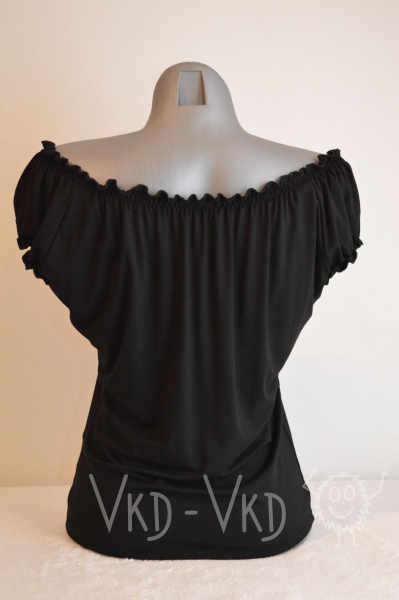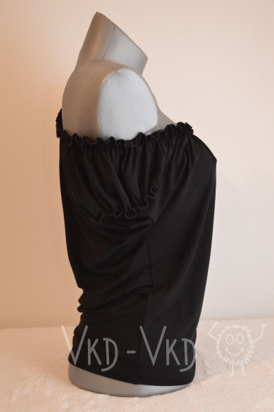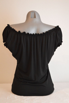 Jemný viskozový materiál, velmi příjemný - na léto i na zimu, délka přesně do pasu, vhodný ke kalhotám i k sukni. Velmi ženský - zdůrazňuje křivky. Krojový styl.