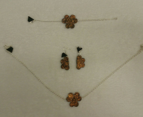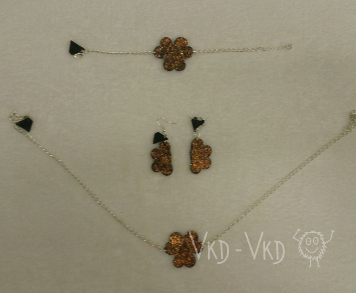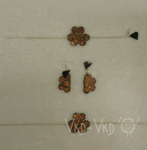 Červená srdíčka zdobená 3D efektem, třpytky, zahřejí na těle i na duši. ALL HANDMADE Sada obsahuje - náramek, naušnice, řětízek. Nastavitelná velikost. …