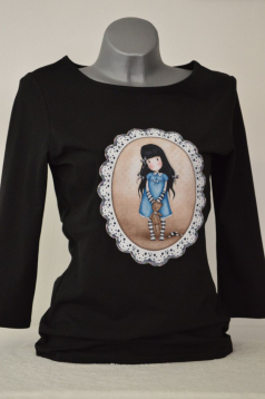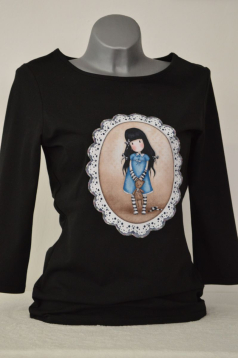 OMEZENÉ MNOŽSTVÍ! Černé tričko s aplikací - romantické zátiší s panenkou. Velmi příjemně nositelné - polodlouhý rukáv. Vždy pouze jeden kus a jedna velikost. ![]()