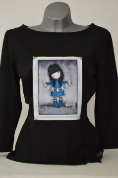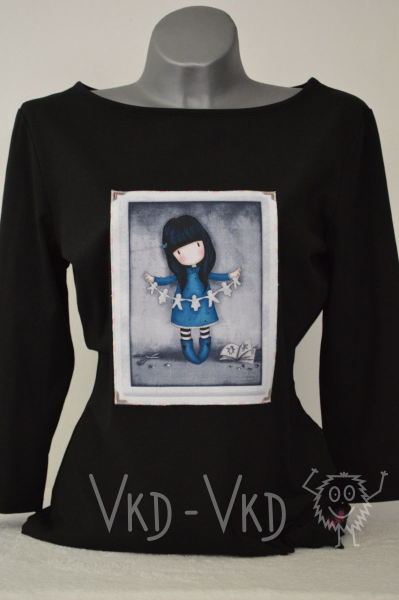 OMEZENÉ MNOŽSTVÍ! Černé tričko s aplikací - romantické zátiší s panenkou. Velmi příjemně nositelné - polodlouhý rukáv. Vždy pouze jeden kus a jedna velikost. yes …