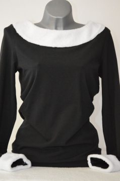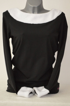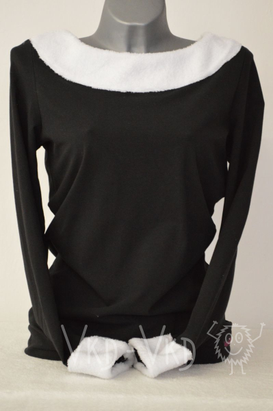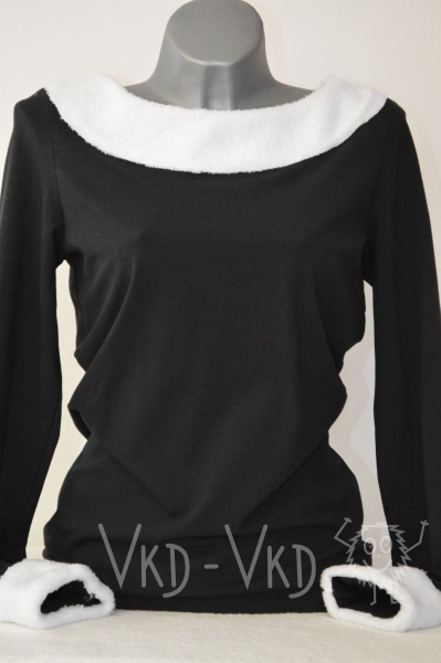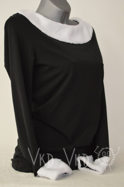 Černé tričko lemované bílým okrajem kolem rukávů a krku vhodnější pro chladnější měsíce a nebo vánoční čas.![]()
