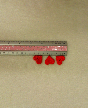 Červená srdce s velkými třpytky, vhodné jako knoflík nebo dekorace. Velikost asi 2 cm.