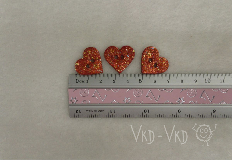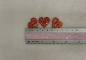Červená srdce s velkými třpytky, vhodné jako knoflík nebo dekorace.