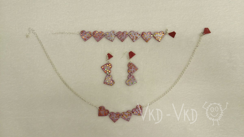 Černá srdce posetá 3D třpytky, složená ke každé večerní párty. ALL HANDMADE Sada obsahuje - náramek, naušnice, řětízek. Nastavitelná velikost. Doba…