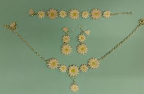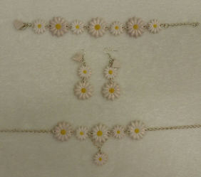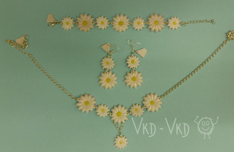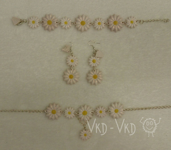 Žluté květinky dekorované sněhovou vločkou a poseté třpytky, jako vánoční nadýchané oblázky. ALL HANDMADE Sada obsahuje - náramek, naušnice, řětízek. …