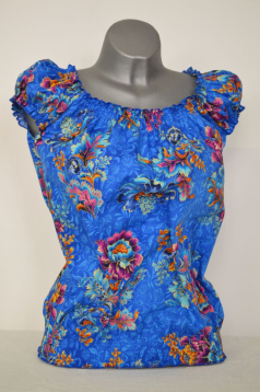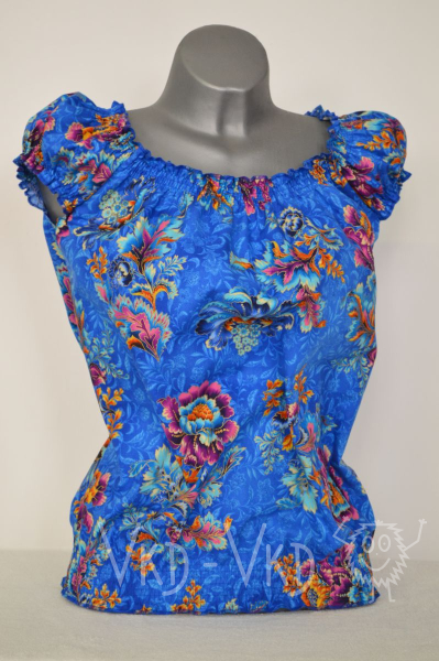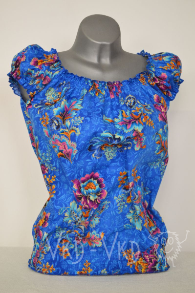 Modrá halenka - zdobena zlatou nitkou, vhodná k úzkým kalhotám nabo nabýrané sukni.![]()