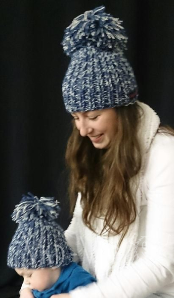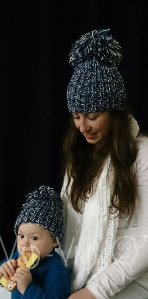 Tmavomodrá žíhaná čepice se zlatavou nitkou, velmi teplý materiál