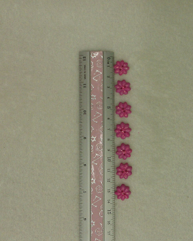 Růžové květinky se třpytky, vhodné jako knoflík nebo jako dekorace.