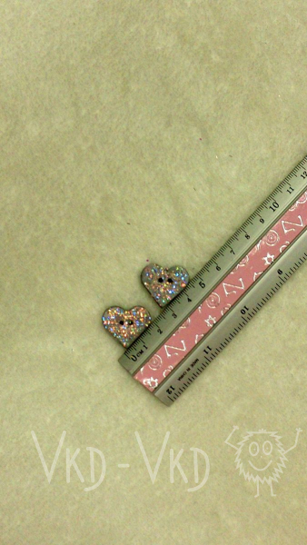 Šedá srdíčka s modrými třpytky, vhodné jako knoflík nebo jako dekorace.