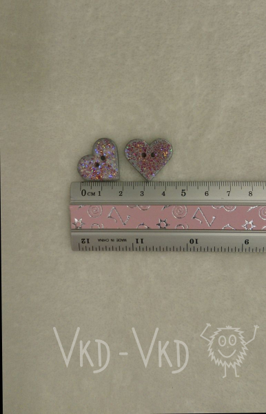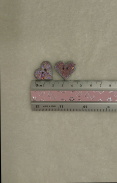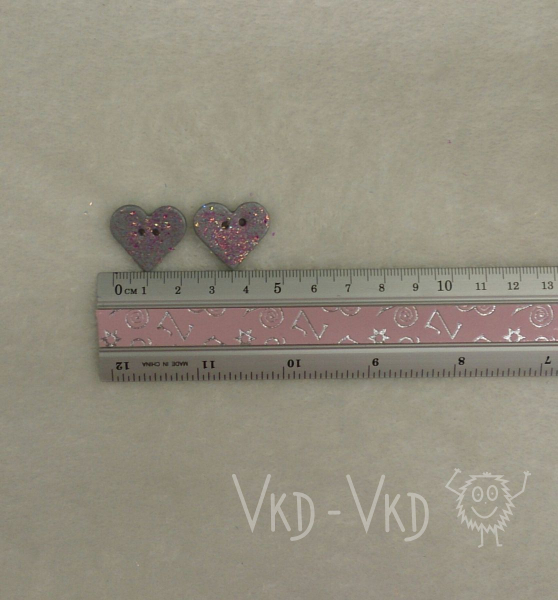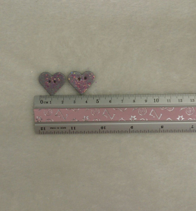 Krásná šedá srdce s tmovorůžovými třpytky, vhodné jako knoflík nebo dekorace.