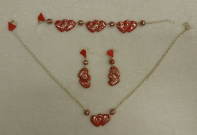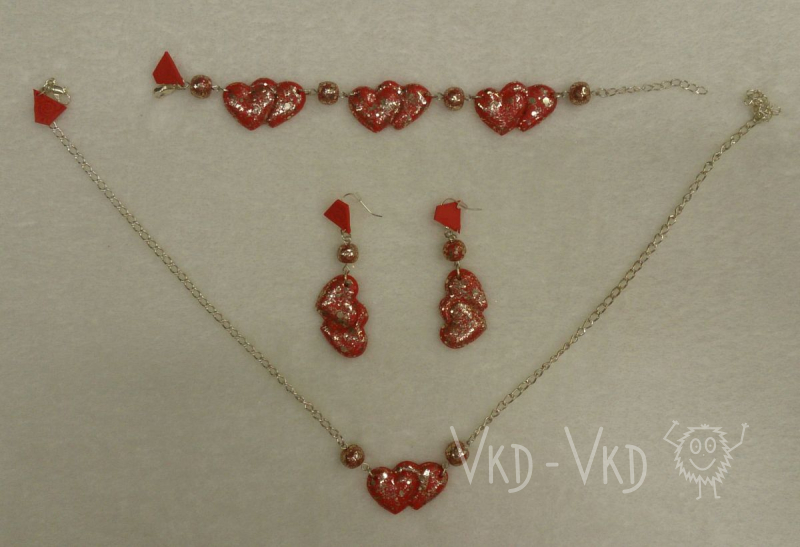 Červená srdce, zdobená černým 3D efektem, vhodná na elegantní večírek, párty. ALL HANDMADE Sada obsahuje - náramek, naušnice, řětízek. Nastavitelná…