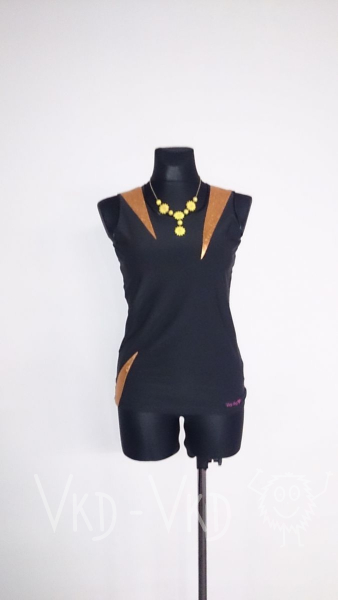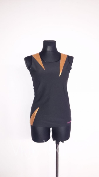Schwarz Unterhemd von sehr leichten Sommermaterial , bei dem man nicht schwitzen, dekoriert holographisch aufgedruckten Gewebes.