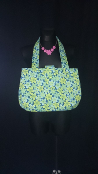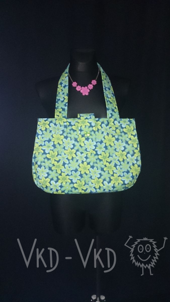 Super-Sommer-Tasche grüne, kleineren blaue und gelbe Blumen, Innentasche.