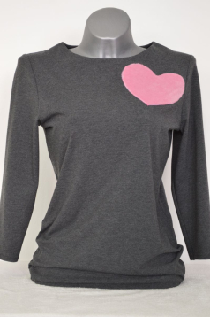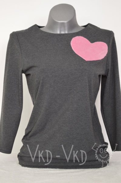 Warmer grauen T-Shirt mit langeren Ärmeln, ornament rosa Herz.![]()