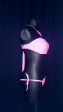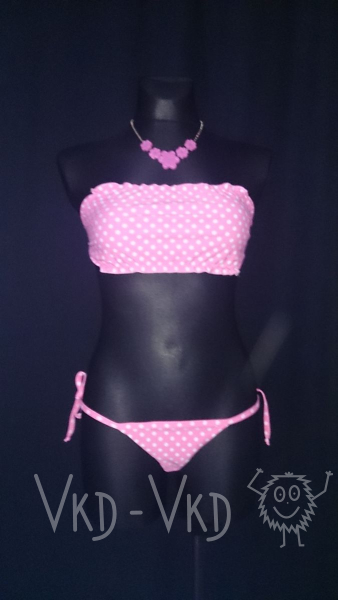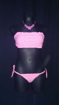 Rosa Badeanzug mit feinem weißen Punkt, Französisch-Stil, leicht Rüschenoberteil, Unterteil des Tango, die alle auf das Binden, mit veränderbarer Länge.